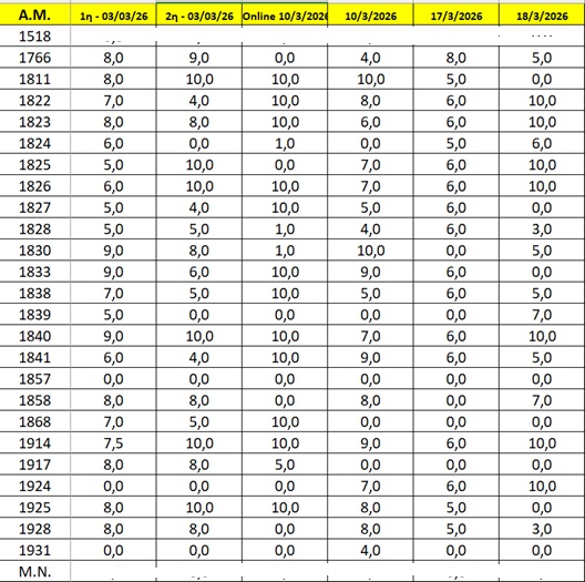 Ανάρτηση βαθμολογίας των έως τώρα εργασιών